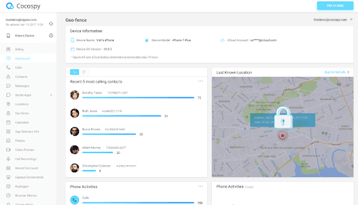 Cocospy is a free spying Application that is used worldwide for its compatibility and truthfulness. This spying pioneer i.e. the Cocospy Phone Tracker helps you to track the activities of your girlfriend and make sure that she is safe from any kind of danger. This application is available for free and liable to both the Android and IOS operating systems.