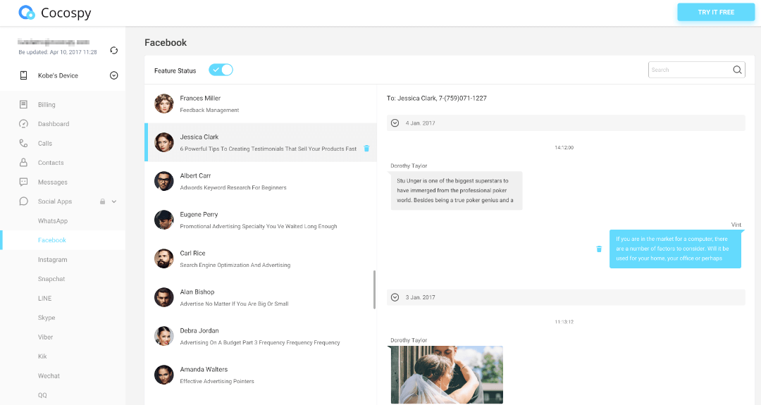 The Cocospy application can track the social media activities of your girlfriend, Various social media application like Facebook, Whatsapp, Viber, and Snapchat arise different complications, online relationships, and cheating occurs on these applications the most. So, keeping the track of the activities which are done by your girlfriend on the internet is necessary in this present World of technology.
