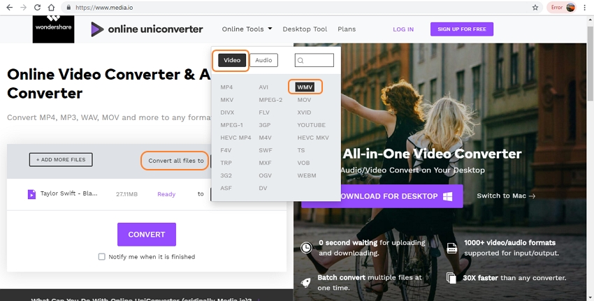 Online UniConverter is one of the popularly used online tools that facilitate converting your MOV as well as other video files to several formats including WMV.