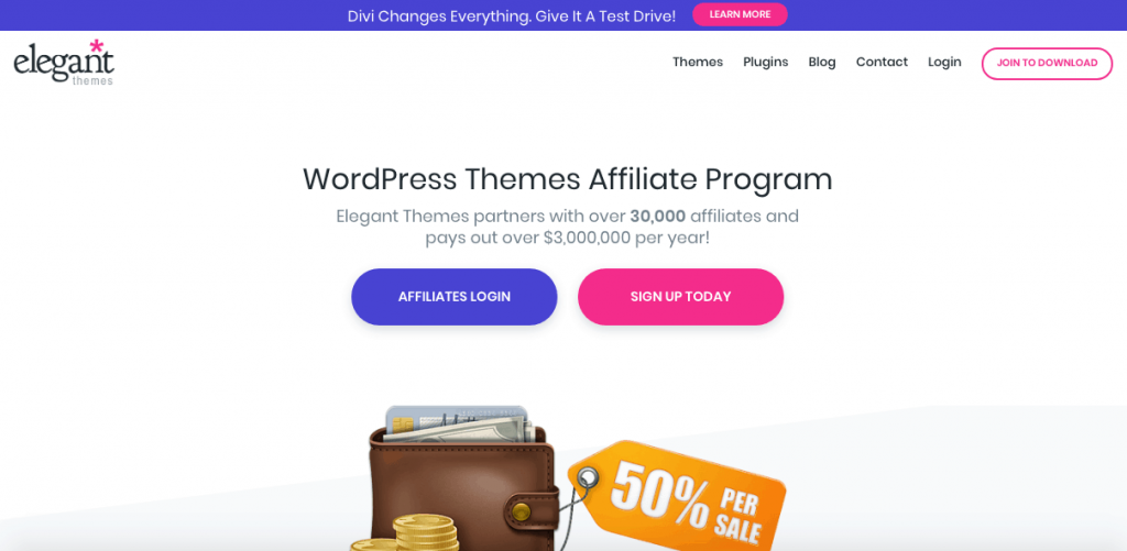 With over 500,000 members, ElegantThemes offers 87 drag-and-drop themes for WordPress in the visual format. The site has partnered with more than 30,000 affiliates all around and paid over $3,000,000 per year.