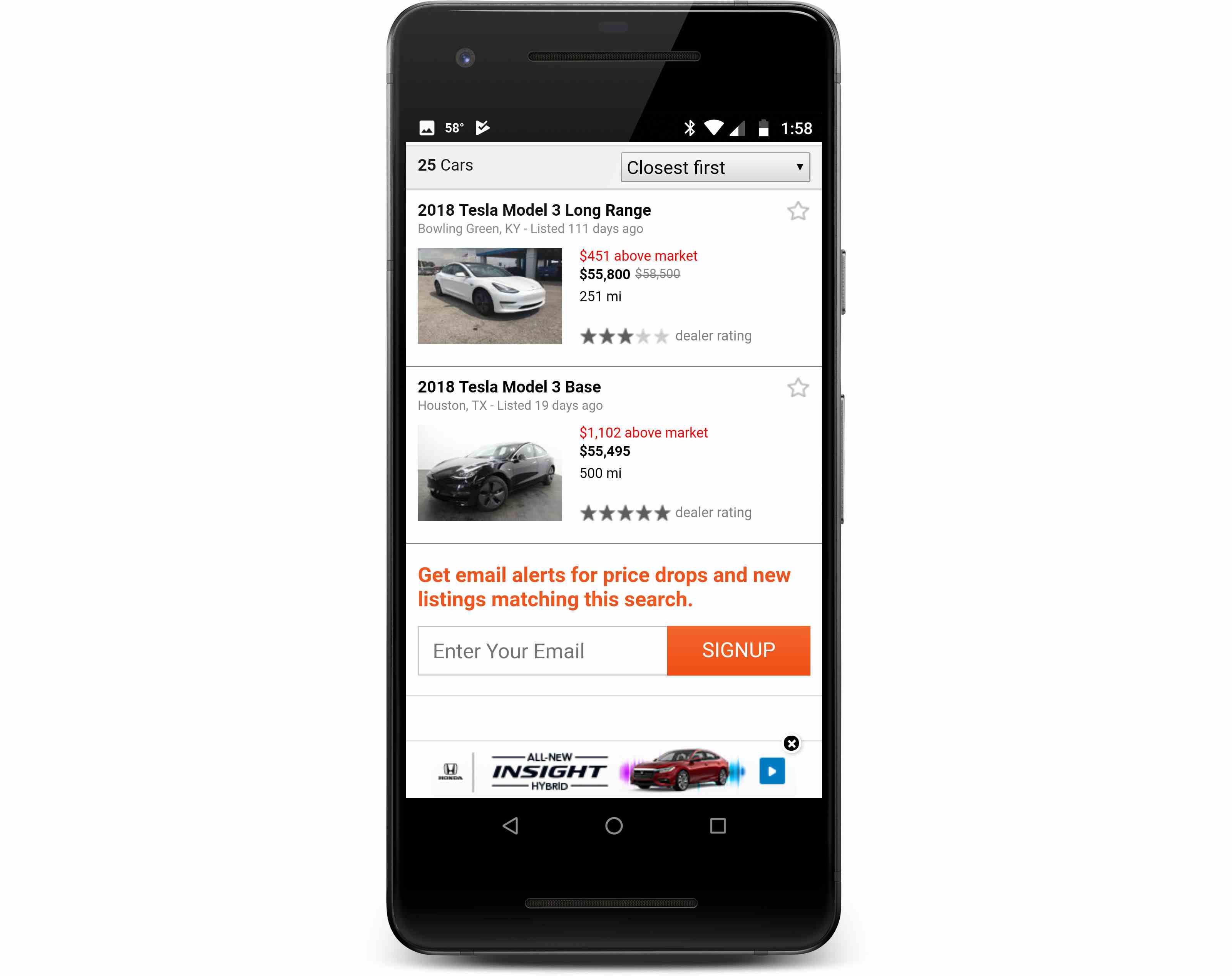 - Easily create price alert to be notified when a car has a price drop