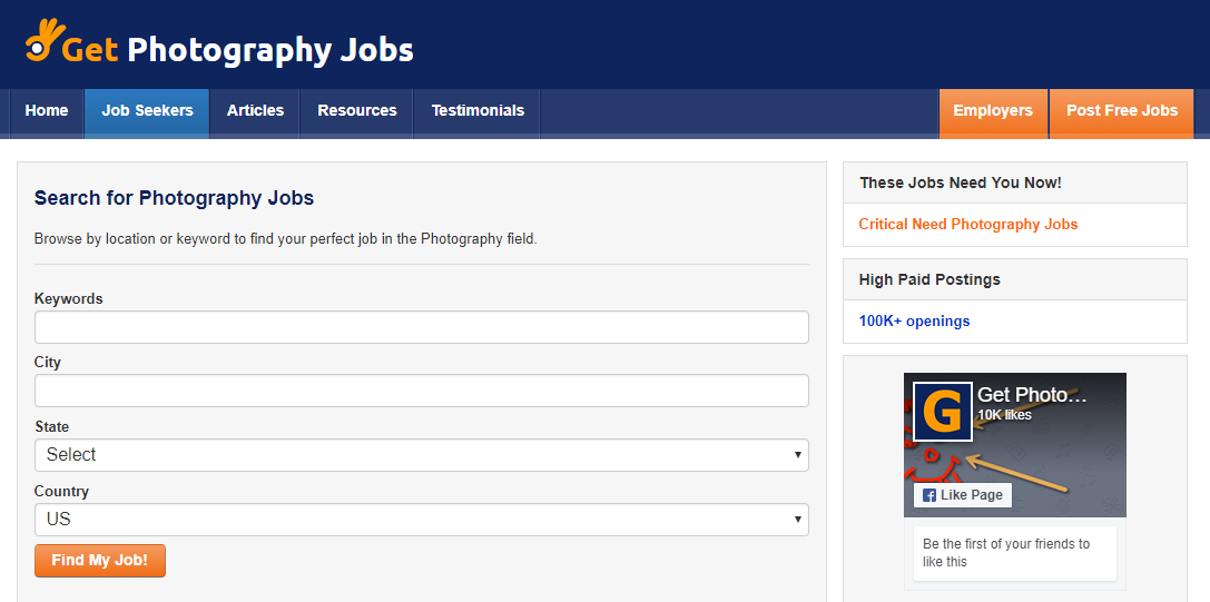 When checked last time, this photography job board had 100K+ listing. However, this searchable job data base is limited to jobs located in the different states of the U.S.