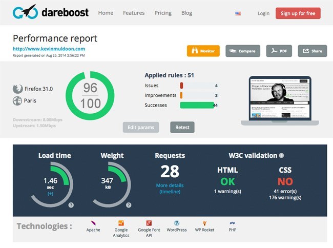 How does your website rank in comparison to your competitors? If your site is 20% slower, its loading time will be noticeably different to your users. Dareboost can make sure that your loading time and the quality of your website is an asset rather than an obstacle to the users’ experience.