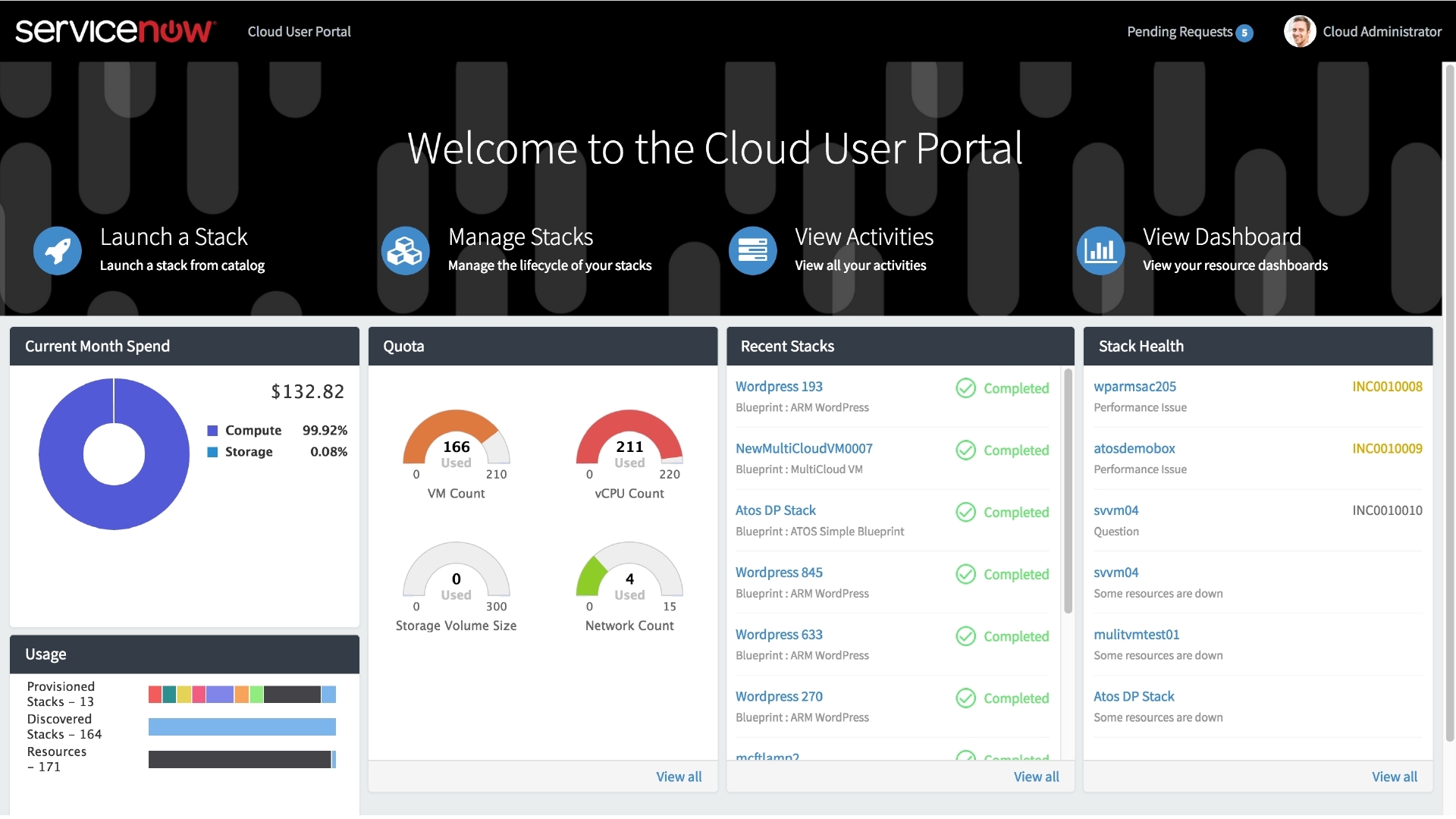 ServiceNow Cloud Management accelerates the delivery of cloud services. This is done via a centralized self-service user interface that streamlines cloud operations using a single system of action. Organizations can reduce public cloud risks and uphold the enterprise-class quality of services with stable policies and configuration processes. These govern the use of infrastructure resources and helps businesses live up to availability, compliance and security requirements.