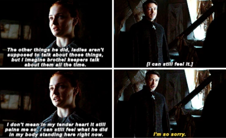 15. Despite all the violence inflicted on her she still managed to remain the same loving Sansa as before which is indeed commendable.