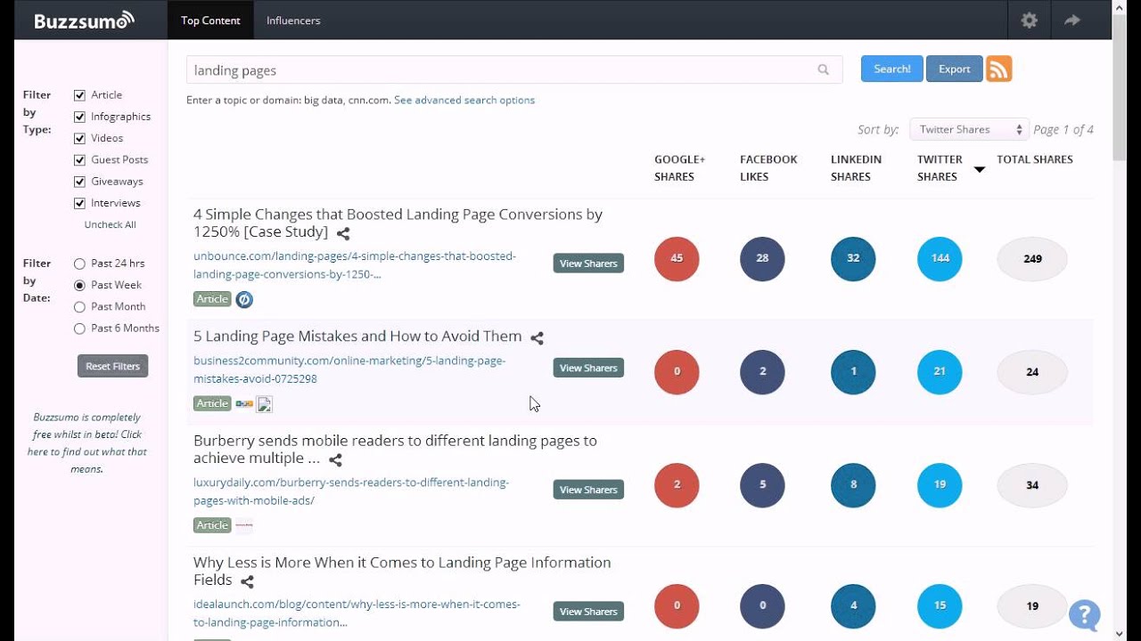 BuzzSumo enables you to find out the best-performing pieces of online content. Seeing what content performs best will help you improve your content.