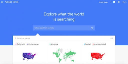 Google Trends can also help you monitor the keywords relevant to your niche. You can monitor their volume over time, and discover the terms and phrases that your target consumers are searching. You can then easily implement them into your content, and increase your online visibility and traffic.