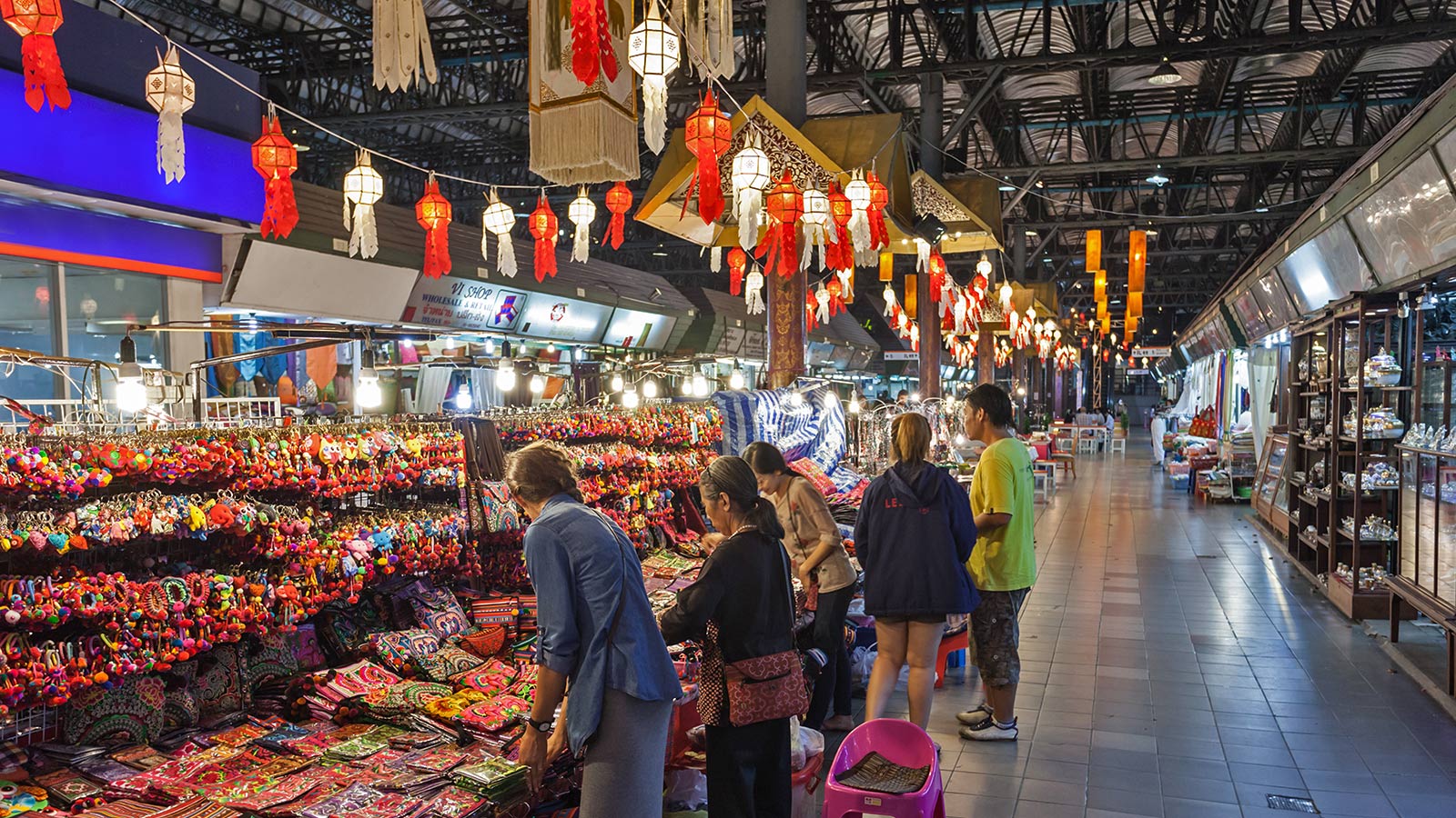 A covered market in the popular Chiang Mai Night Bazaar.