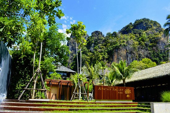 The location, on Railay Beach East, is accessible only by boat. It’s secluded and peaceful – no cars or motorbikes anywhere. And yet it’s not totally isolated, having a short beachside strip of colourful bars and restaurants, with several ‘mini-marts’ plus a pharmacy and medical centre. Access to the mainland is quick and easy by means of water taxis which run continually throughout the day. However, our resort has its own boat deck, and hotel boats are available for guests at all times.