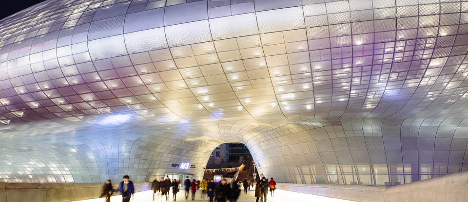 Designed by the late Zaha Hadid, this neo-futuristic cultural complex was commissioned to replace the Dongdaemun Stadium, built during Japanese rule in the 1920s. Dubbed the ‘largest three-dimensional atypical structure in the world’, the undulating aluminium and concrete landmark comprises galleries, event spaces, design shops and lawns that rise up to its roof. The attached Dongdaemun History & Culture Park includes museums that highlight past uses of this area, such as a 16th-century military camp.