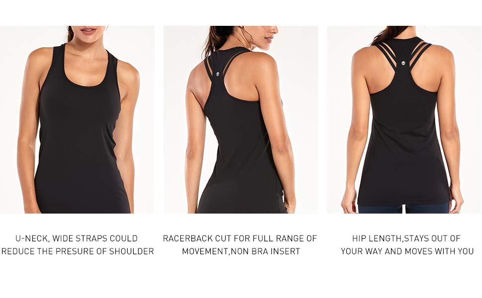 This versatile racerback was designed to stay put and out of your way while you’re on the move. The fabric is soft, sweat-wicking, and four-way stretch. Suitable for all sports indoors and outdoors, such as running, yoga etc..