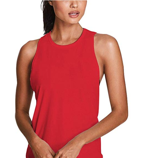 An Amazon brand – This relaxed-fitting tank features a racerback design, side vents for room to move, and slightly dropped armholes show off your favorite sports bra.