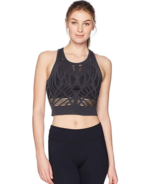 There was a clear preference among the fitness experts we spoke to for airier cropped tanks (since they’re the next best thing to wearing a sports bra by itself). Trainer Tara Laferrara says she always gets compliments on this laser-cut tank that she likes for yoga or weight training. “It’s super cute and sporty, and the length is long enough to just show a hint of a waistline.”